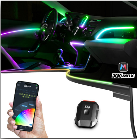 XKmax RGB Fiber Optic LED Interior Ambient Light Kit for Car & Truck | Color Chasing | App-controlled